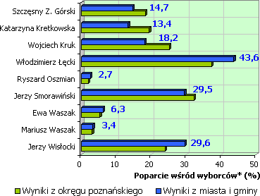Poparcie wybranych kandydatów w okręgu poznańskim (głosów ważnych 321266):